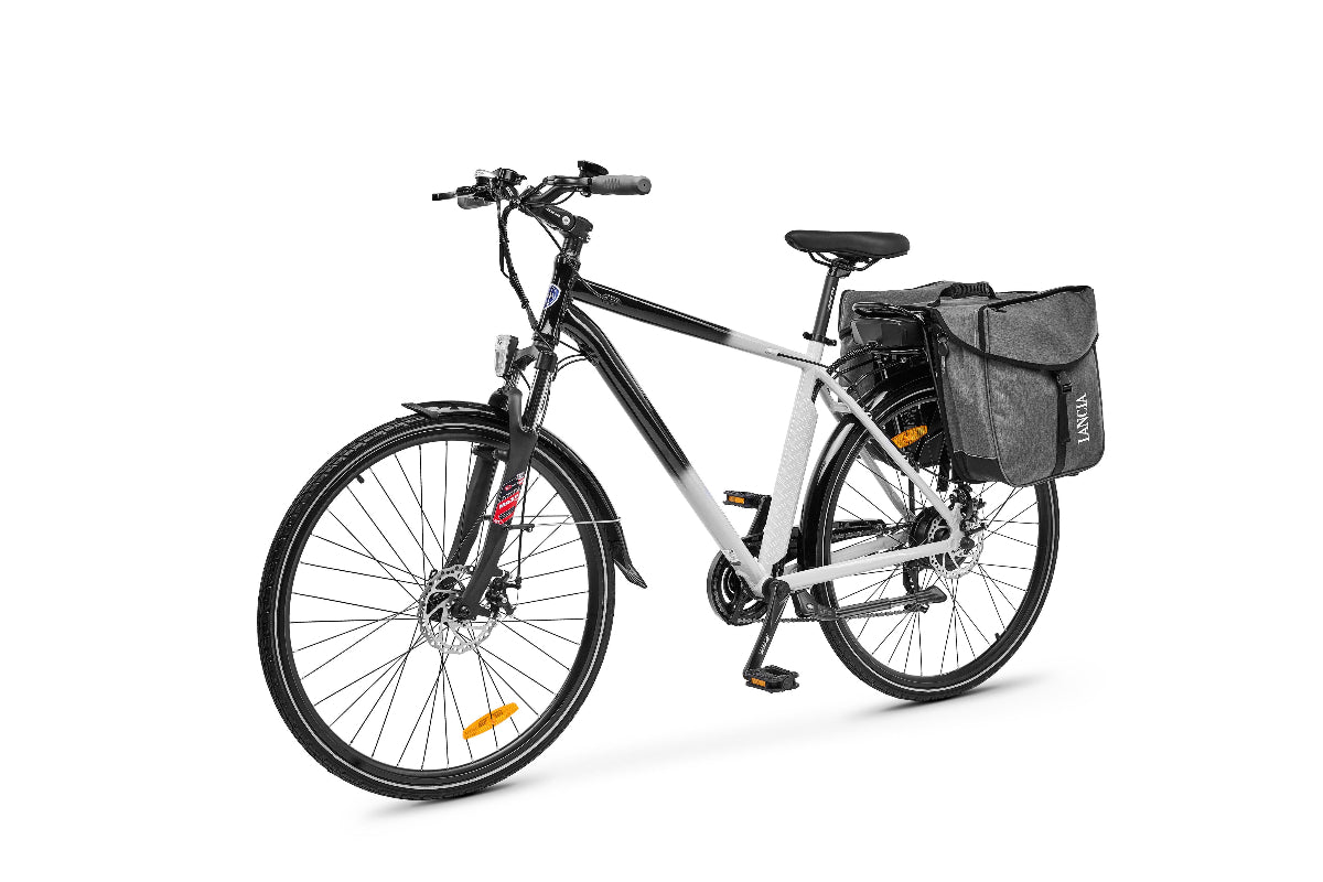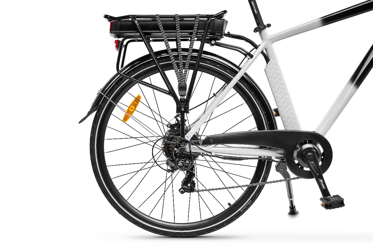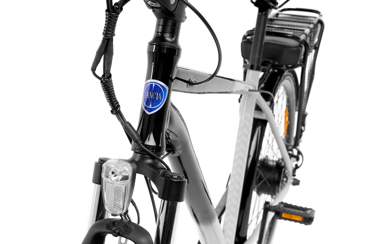 La bici elettrica Lancia Estro è la city bike ideale per svolgere le tue commissioni quotidiane o per andare al lavoro. Il telaio realizzato in alluminio, curato nei minimi particolari, dona un’eleganza senza tempo. Le ruote da 700x38 permettono di affrontare percorsi di breve durata su terreni perlopiù pianeggianti fino a 70 km, grazie alla batteria estraibile da 36V e al motore da 250 W. Le comode e pratiche borse laterali comprese in ogni confezione, facilitano il trasporto della spesa senza doverti appesantire le mani.