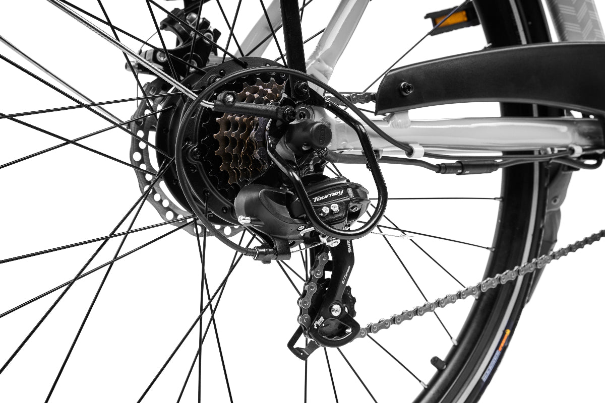 Questa e-bike è equipaggiata con Cambio Shimano Tourney a 7 velocità per garantirvi un piacere di guida versatile e affidabile su ogni tipo di terreno. I cambi Shimano sono sinonimo di qualità e tecnologia avanzata.