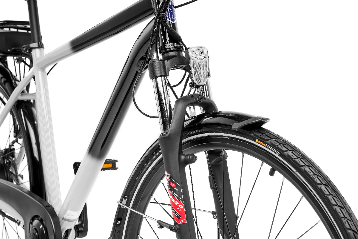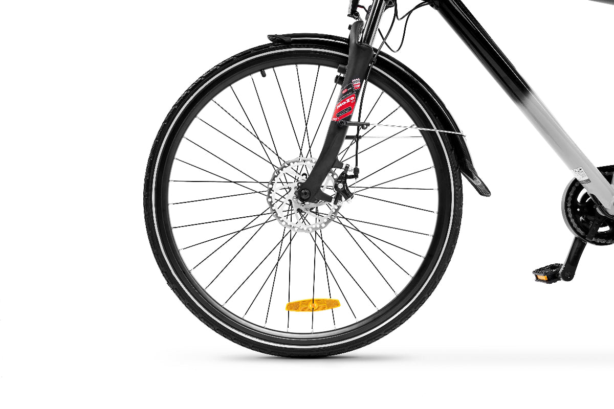 La frenata è potente e modulabile in ogni condizione con questa e-bike, grazie ai freni a disco meccanico anteriore e posteriore e la leva freno con sensore cut-off. Il sensore di spegnimento del motore in frenata garantisce massima sicurezza, un controllo preciso e una guida serena per ogni avventura.
