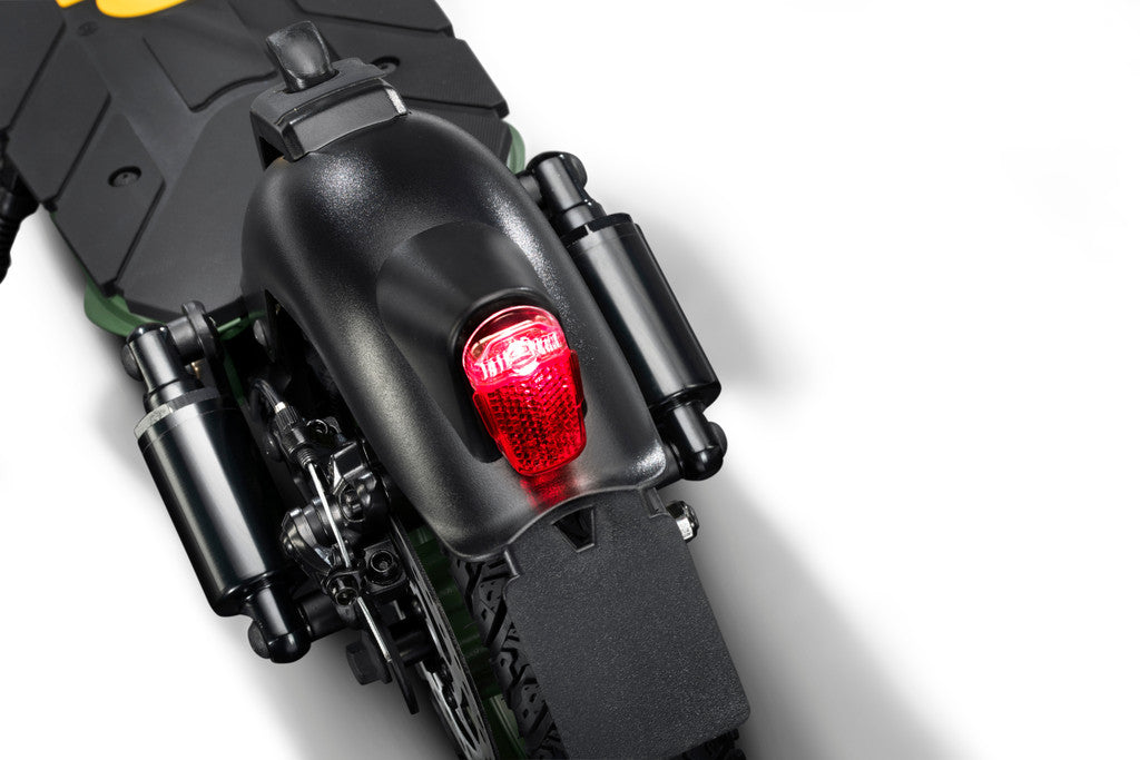 La combinazione di freni elettronici, freno a disco posteriore e tecnologia KERS (Kinetic Energy Recovery System) offre all'e-scooter sicurezza, prestazioni e sostenibilità. Il freno elettronico anteriore garantisce una frenata regolare, mentre il freno a disco posteriore aggiunge potenza e stabilità. Il sistema KERS recupera l'energia cinetica dalla frenata, prolungando l'autonomia del monopattino.