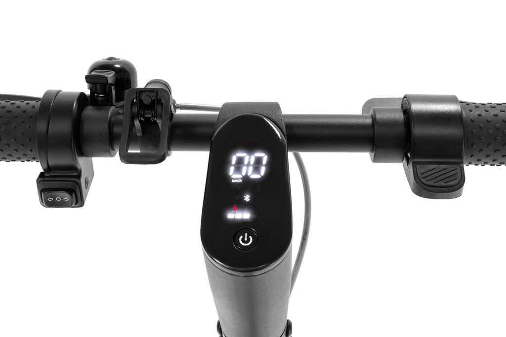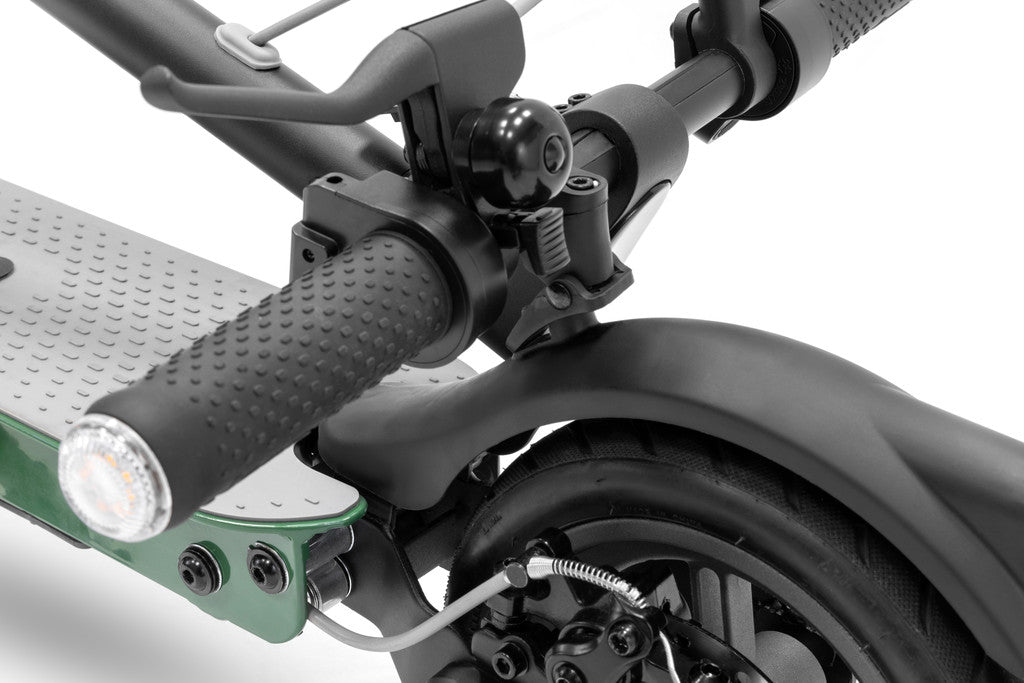 Con la doppia leva freno, il campanello ad alte prestazioni e le frecce direzionali integrate, la tua presenza in strada a bordo di questo e-scooter è segnalata agli altri utenti in maniera chiara e inequivocabile, per una guida sicura e consapevole.
