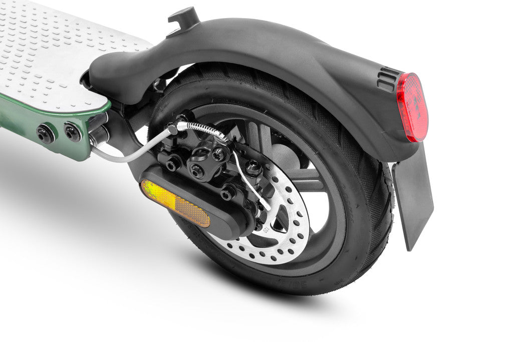 La combinazione di freni elettronici, freno a disco posteriore e tecnologia KERS (Kinetic Energy Recovery System) offre all'e-scooter sicurezza, prestazioni e sostenibilità. Il freno elettronico anteriore garantisce una frenata regolare, mentre il freno a disco posteriore aggiunge potenza e stabilità. Il sistema KERS recupera l'energia cinetica dalla frenata, prolungando l'autonomia del monopattino.