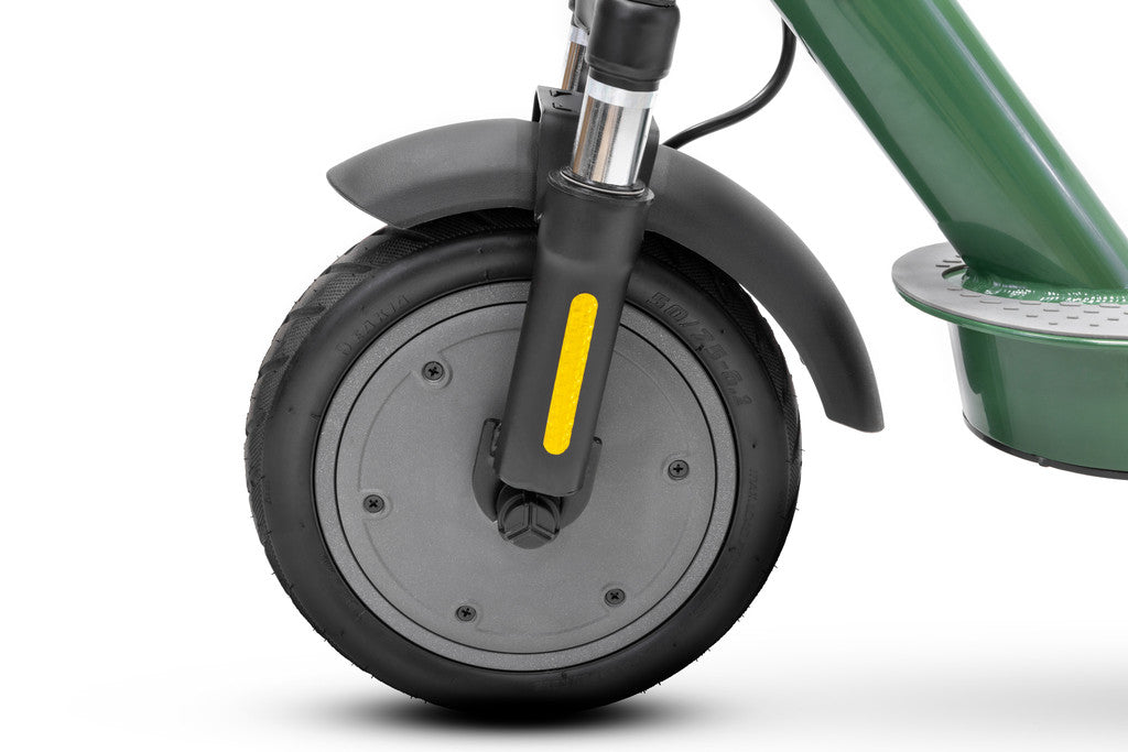 Gli pneumatici da 8.5" con camera d'aria assicurano un comfort ottimale al guidatore, attenuando gli urti e le vibrazioni dell'e-scooter su mani e piedi qualora si percorrano strade irregolari. La camera d'aria all'interno dello pneumatico, infatti, permette un migliore assorbimento degli urti e una maggiore adattabilità alle varie superfici stradali, contribuendo così a una esperienza di guida più sicura.