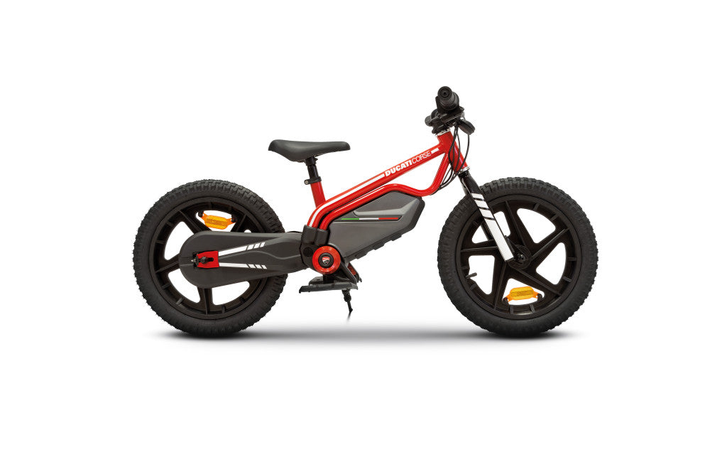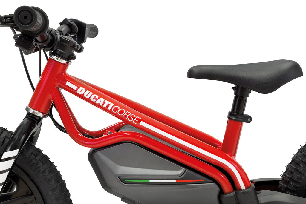 Inspired by the unmistakable style of Ducati motorcycles, this e-bike will take young riders on exciting adventures! On the road as if it were a racetrack, fun is guaranteed!