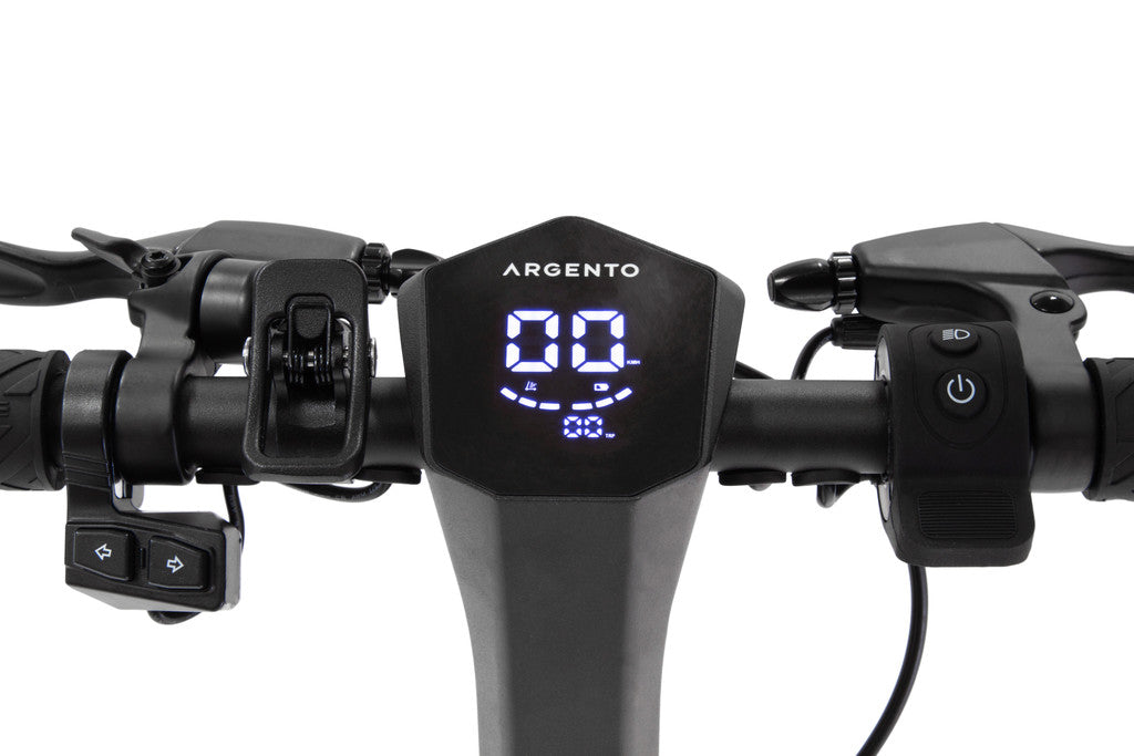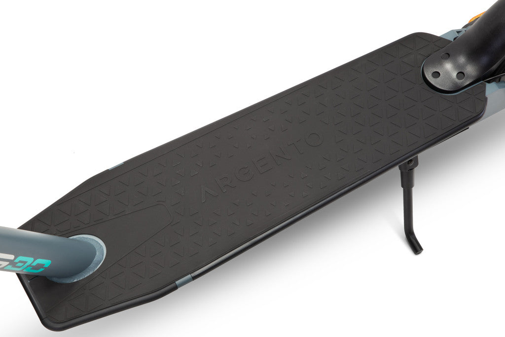 The Argento AG30 electric scooter enhances your every urban journey: 10” wheels with air chamber and front suspension for comfort and stability, a 350W brushless motor (peak power: 450W) to tackle traffic and hills, and an integrated lock for safe parking anywhere.