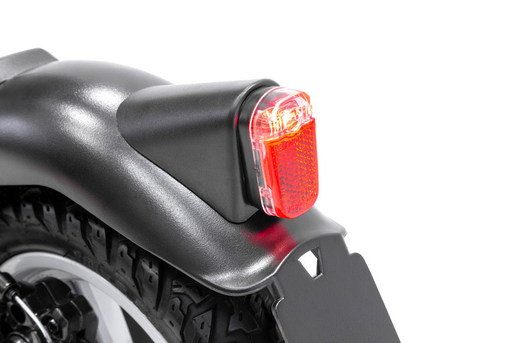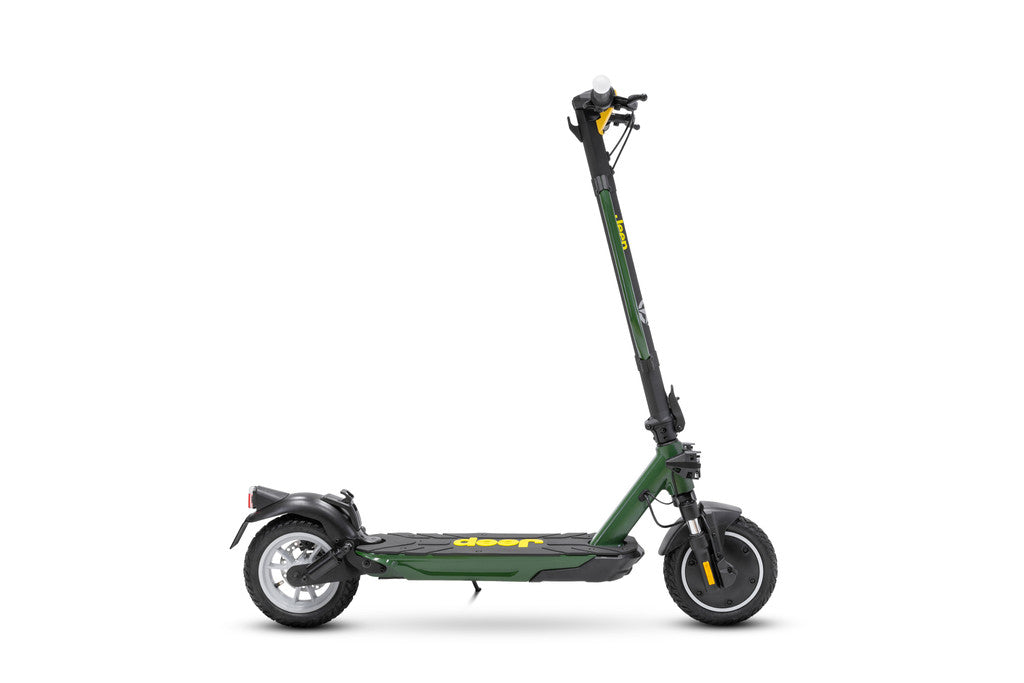 The scooter is equipped with a 400W brushless motor, with a peak power of 670W. This type of motor offers a quiet and efficient ride, requires less maintenance than traditional brushed models, and ensures a longer lifespan. The peak power allows for easy maneuvering in city traffic and up hills.