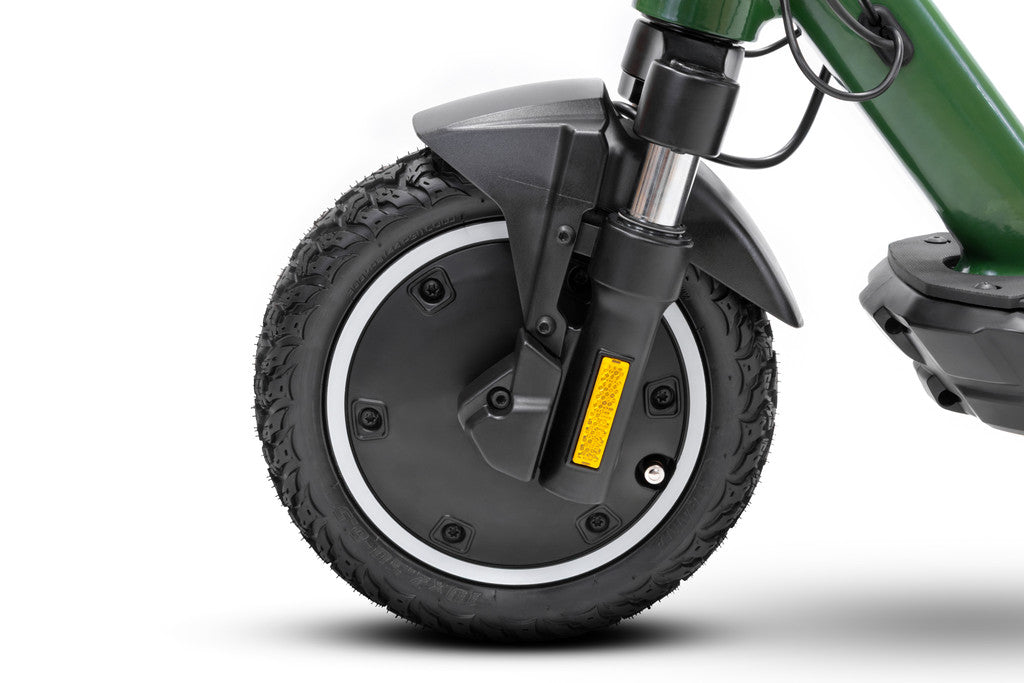 With a range of up to 40 km, a 400W motor, and dual suspension, the Jeep JAD electric scooter is designed to perform even on uneven surfaces. The 10" tubeless all-road wheels ensure stability, comfort, and safety wherever you go.