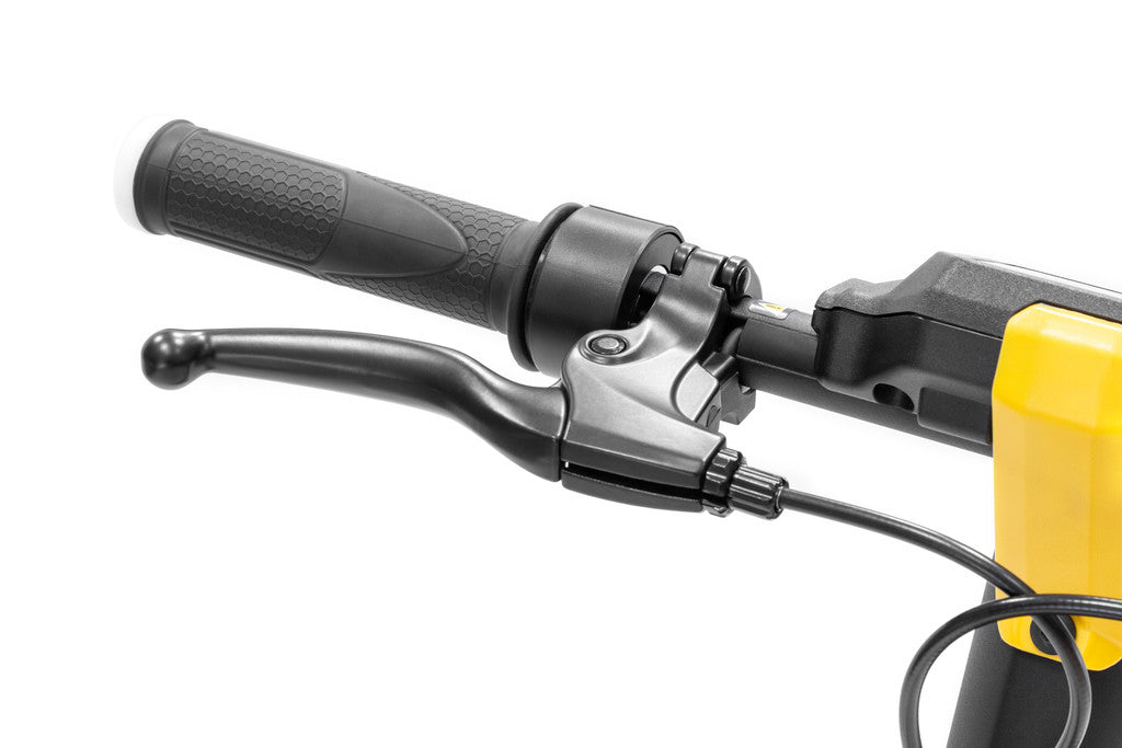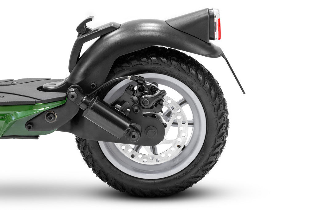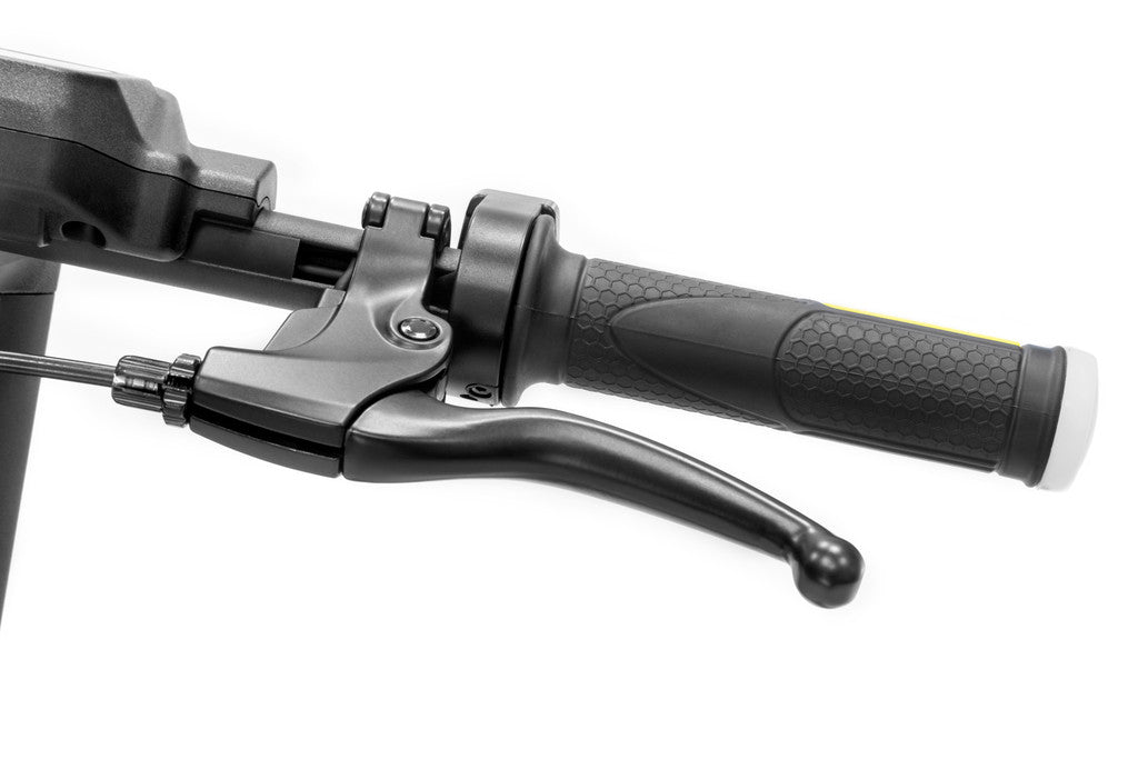 The 10" tubeless all-road tires are designed to offer excellent performance on a variety of road surfaces. Tubeless technology allows for better air retention and greater efficiency in power transmission, while simultaneously reducing the risk of punctures due to the lack of an inner tube. These tires ensure a smooth and safe ride, both on paved roads and on slightly rough terrain.