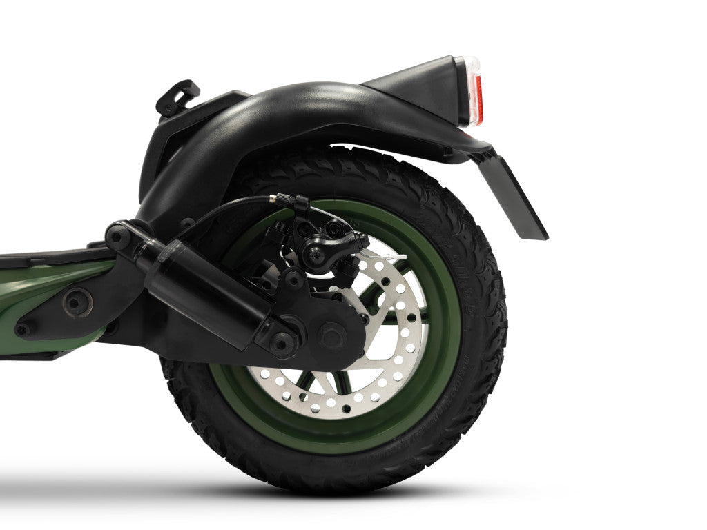 The combination of electronic brakes, a rear disc brake, and KERS (Kinetic Energy Recovery System) technology gives the e-scooter safety, performance, and sustainability. The front electronic brake ensures smooth braking, while the rear disc brake adds power and stability. The KERS system recovers kinetic energy from braking, extending the scooter's range.